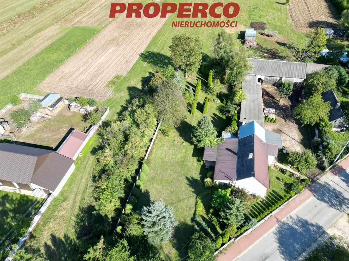 Działka w kształcie trapezu, częściowo ogrodzona, w pierwszej linii w stosunku do asfaltowej drogi powiatowej. Przybliżone wymiary działki: 31 x 1282 x 20 x 1310 . Szerokość frontu ok. 31m (szerokość działki pod kątem prostym ok. 21m).